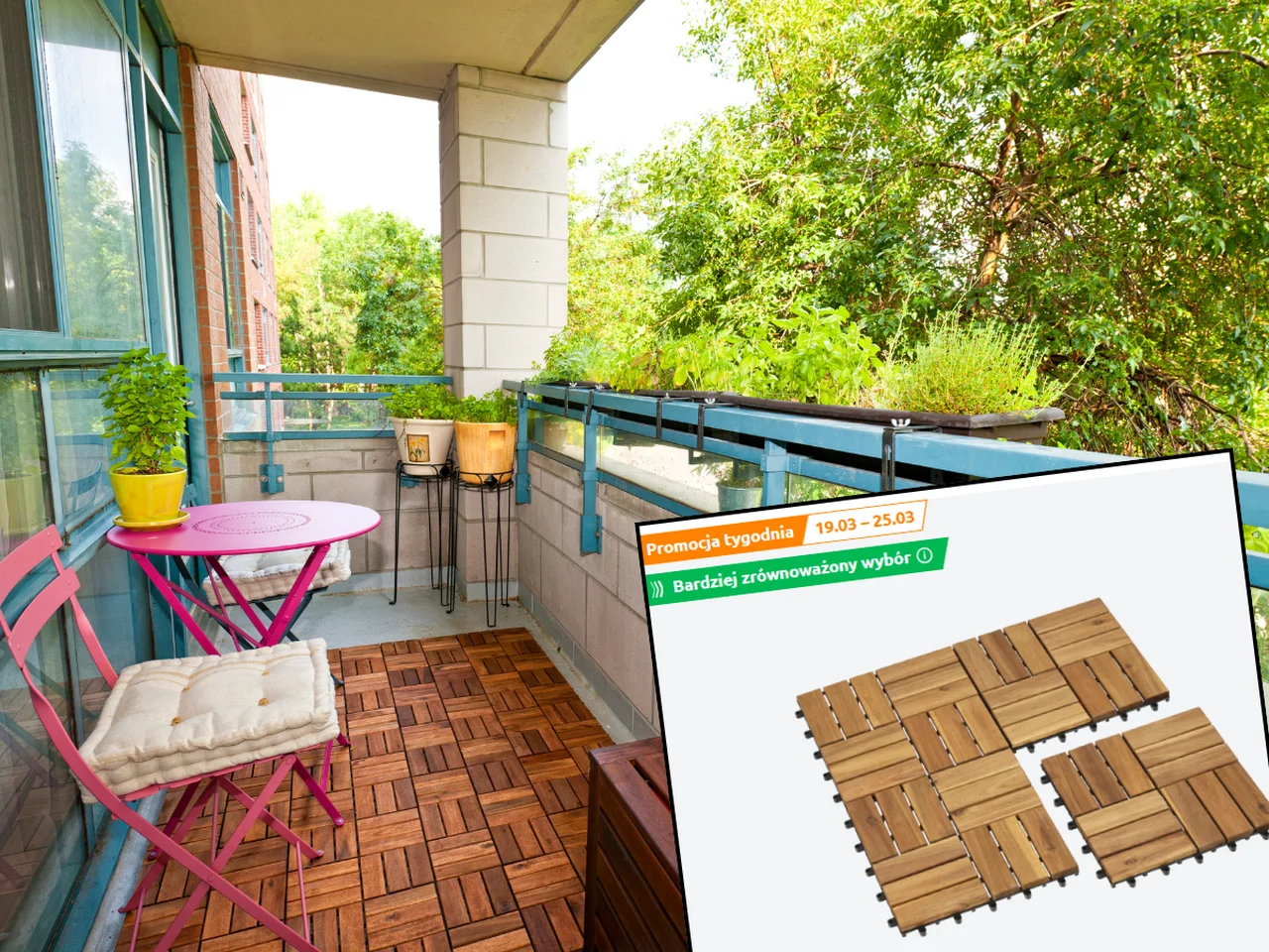 Wraz z nadejściem wiosny wiele osób w końcu może posprzątać i ozdobić swoje balkony, aby móc spędzać na nich coraz dłuższe i cieplejsze wieczory. Dla osób, które planują nieco większą modernizację balkonu, Action przygotowało wyjątkową ofertę. Proste w montażu, drewniane płytki tarasowe, nadadzą balkonowi wyjątkowo przytulny wygląd.