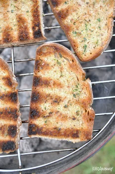 Składniki: 5 kromek średniej grubości (jedna około 17 cm długości) 2 czubate łyżki masła (w temperaturze pokojowej, masło powinno być kremowe) 5 ząbków czosnku 1 czubata łyżka poszatkowanej natki pietruszki …