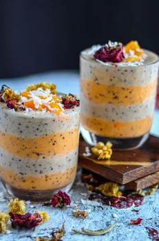 Przepyszny i zdrowy deser w paski z egzotycznymi owocami, chia i kremem mlecznym. Łatwy w przygotowaniu, idealny na każdą okazję.